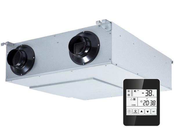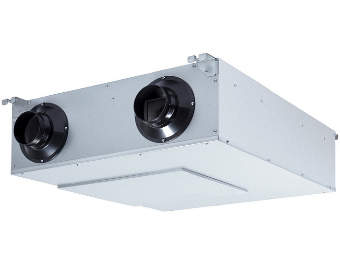 Вентиляторы установок оборудованы высокоэффективными крыльчатками с вперед загнутыми лопатками и асинхронными двигателями. Уплотненные шариковые подшипники двигателей не требуют техобслуживания и обеспечивают увеличенный срок службы. Защита двигателей вентиляторов осуществляется встроенными термоконтактами с автоматическим перезапуском при температуре 125°С. В установке имеется две скорости вращения вентиляторов, возможность управления внешним электронагревателем (поставляется отдельно) и электронная защита рекуператора от обмерзания.