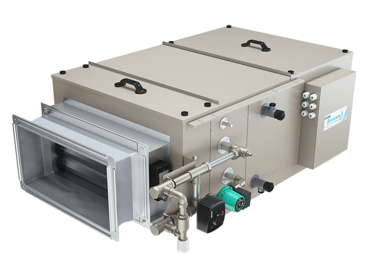 - Водяной нагреватель со смесительным узлом с 2-х или 3-х ходовым клапаном.