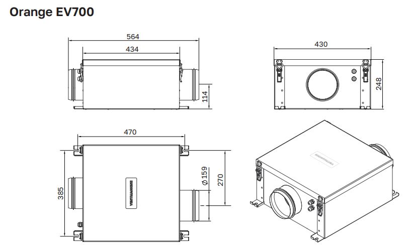 Вытяжные установки серии VentMachine Orange EV700 предназначены для быстрого и эффективного удаления загрязненного воздуха из помещения и рассчитаны на совместную синхронную работу с приточными вентиляционными установками Orange 600.